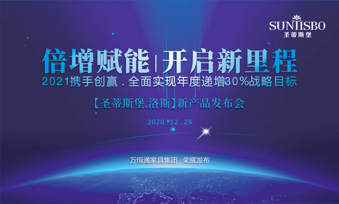 2020年12月25日,倍增賦能|開啟新里程——“圣蒂斯堡·洛斯”新品發(fā)布會在?廣東省東莞市厚街鎮(zhèn)會展中心南路2號的集團營銷中心盛大舉行,圣蒂斯堡董事長王健文先生攜公司高層領導,與來自五湖四海的經(jīng)銷商家人們歡聚一堂,共同見證【圣蒂斯堡·洛斯】新品榮耀面世,正式拉開了圣蒂斯堡2021年的發(fā)展序幕。