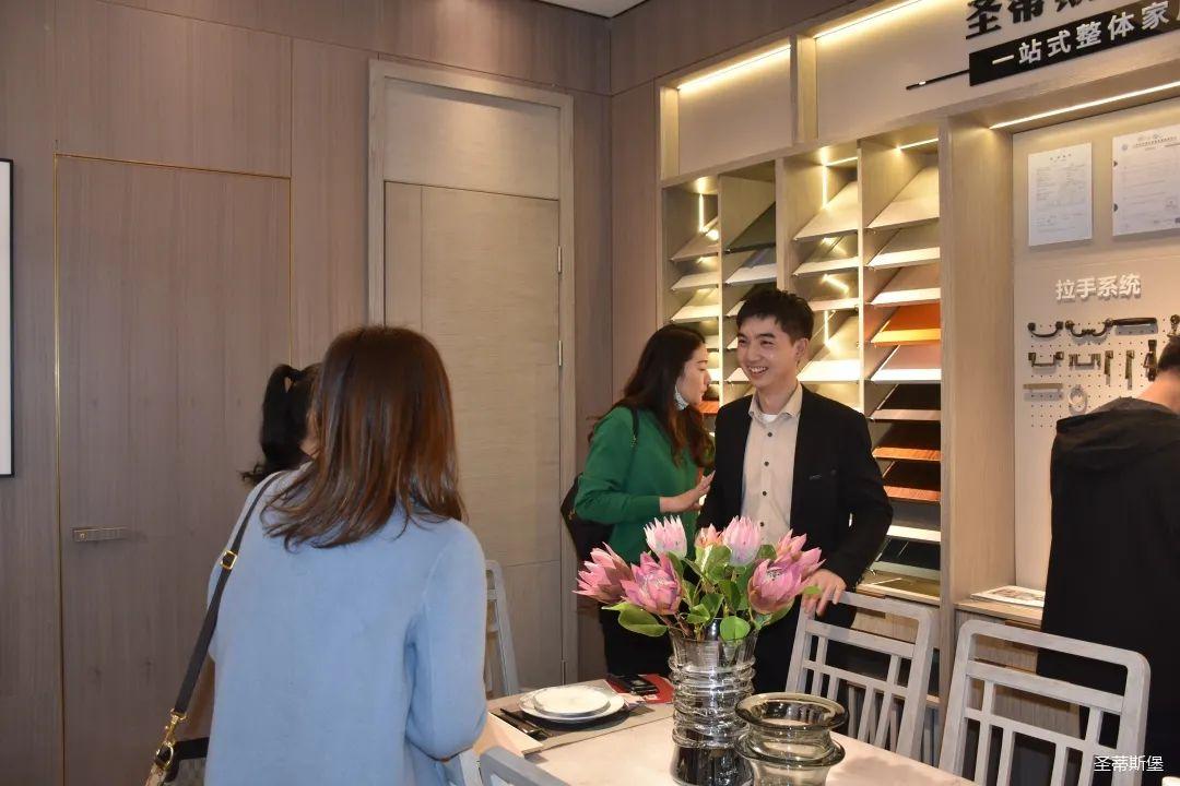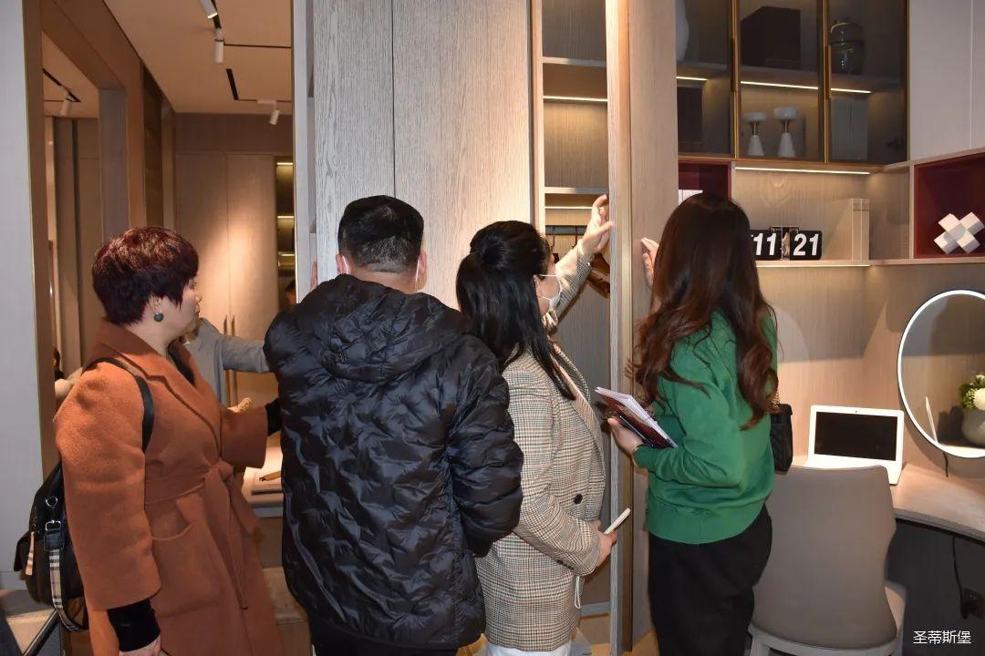 展廳內(nèi),專業(yè)的導師為嘉賓們詳細介紹了產(chǎn)品工藝特點、整體造型特色、裝飾元素以及色彩搭配等;還有全屋定制、固裝、營銷等部門高管,與經(jīng)銷商熱情的交流溝通,并為大家講述了圣蒂斯堡的原創(chuàng)設計理念?!奥逅埂敝鞔虻牟町惢p奢,更是贏得了在場經(jīng)銷商家人的高度贊譽;圣蒂斯堡用實際行動證明了在家居界不可比擬的產(chǎn)品優(yōu)勢和實力。