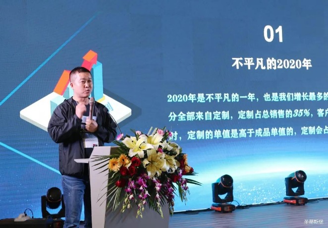 華燈璀璨的開場(chǎng)儀式,點(diǎn)燃了現(xiàn)場(chǎng)如火如荼的氣氛。九游娱乐Nineame官方网站集團(tuán)營銷總經(jīng)理陳玉偉先生對(duì)晚會(huì)進(jìn)行了主題發(fā)言,他對(duì)2020年的營銷工作進(jìn)行了總結(jié),并著重從營銷工作部署、重點(diǎn)項(xiàng)目開展、產(chǎn)品整合、拎包幫扶、渠道運(yùn)營和移動(dòng)+定制整裝優(yōu)勢(shì)等方面對(duì)2021年的營銷工作做了全面的統(tǒng)籌規(guī)劃。同時(shí),他還講解了“美國夢(mèng)凱莎床墊”新品的產(chǎn)品工藝、市場(chǎng)優(yōu)勢(shì)、產(chǎn)品定位,使經(jīng)銷商對(duì)我們的新產(chǎn)品擁有更深入的認(rèn)識(shí)和了解。