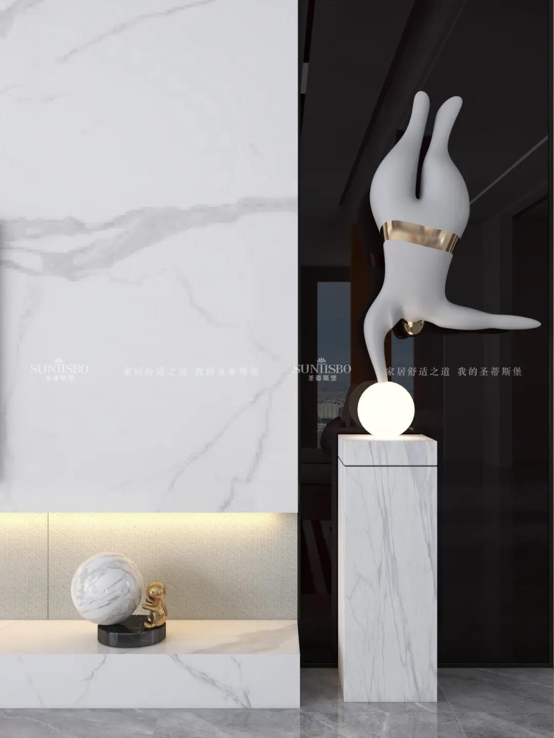 在獨有的簡奢設(shè)計里,英倫仿古灰自帶貴族光環(huán),激活了感官對材質(zhì)與肌理的敏感度,構(gòu)建出平整而連貫的線面互動。在細(xì)節(jié)之間設(shè)計以生活習(xí)慣為主導(dǎo)的入戶空間。