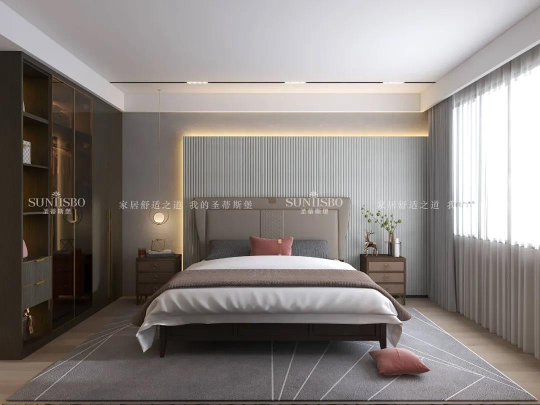 優(yōu)雅的米白色調(diào),沉穩(wěn)中帶有溫柔清新的自然感,以探尋最舒適的視覺體驗為出發(fā)點,將色彩深淺融合,以達(dá)空間平衡??臻g線條疏密有序,平行延續(xù)出流暢輕巧的線性方程,以流動的姿態(tài),達(dá)到簡約且堅固的空間效果。