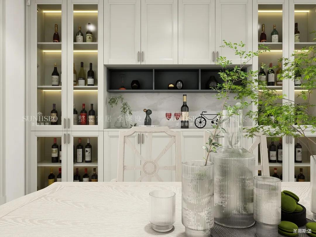 在快節(jié)奏的當(dāng)下,我們也可慢下腳步體驗(yàn)一把“輕奢”生活,餐廳絕對是最佳地點(diǎn)!根據(jù)房屋本身的設(shè)計,它擁有著大空間的優(yōu)勢,設(shè)計師將自然的材質(zhì)紋理融入膚感界面,與整體空間相得益彰,配合著實(shí)木+玻璃柜門來展現(xiàn)用餐時的“輕奢魅力”。