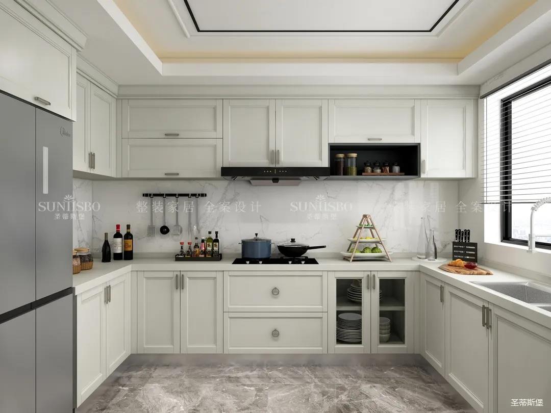 廚房從屋主的飲食習(xí)慣出發(fā),運(yùn)用溫柔的莫蘭迪色彩(仿古白)打開了美式櫥柜定制的新世界!在美式輕奢的基調(diào)上,進(jìn)行線面模塊的靈活組合,在滿足廚房基本需求的同時也將儲物優(yōu)勢傳達(dá)到每一細(xì)節(jié)處。