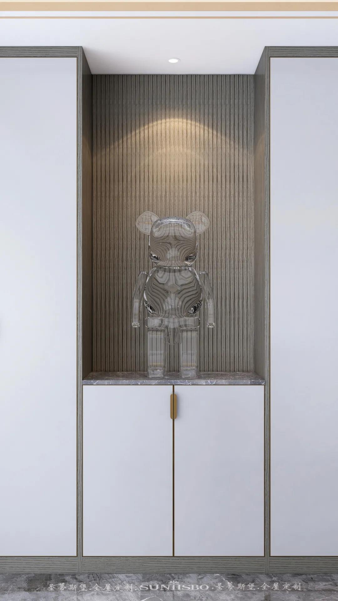 兒童房的主色調(diào)是白色,空間運(yùn)用不同程度的粉色展現(xiàn)出一個(gè)充滿童真的空間氛圍,布偶小熊,別致的兒童擺件都是對女兒活動(dòng)空間的精選,在燈光的渲染下,呈現(xiàn)出溫馨舒適的氛圍。