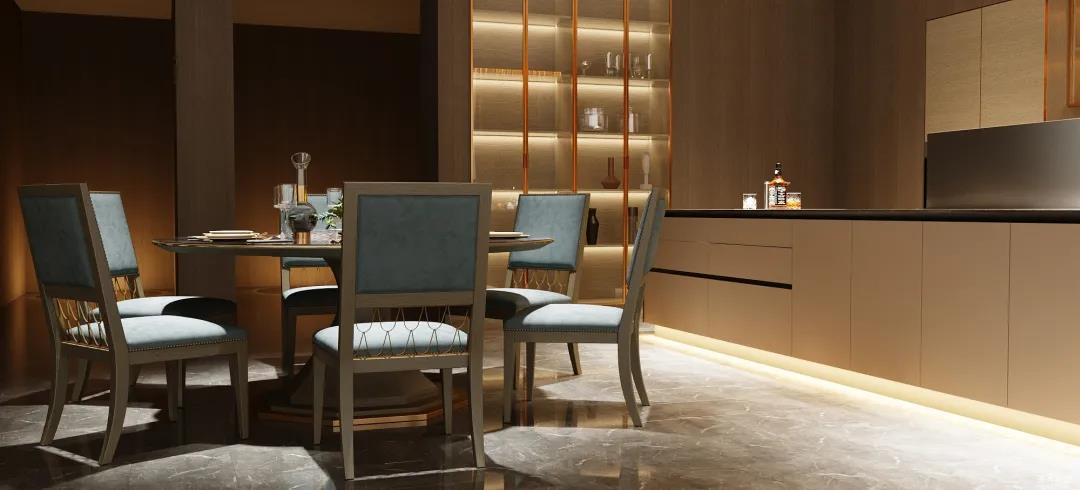 餐廚的極簡(jiǎn)也可兼具多元,以一字內(nèi)嵌式展開(kāi)的廚區(qū)收納柜,兼顧了從杯具、調(diào)料等廚用材料收納到廚電歸置動(dòng)線功能處理。在展示區(qū)域,玻璃隔板組合實(shí)木定制柜的表現(xiàn)形式,更是提升了空間的明亮度與寬闊感。