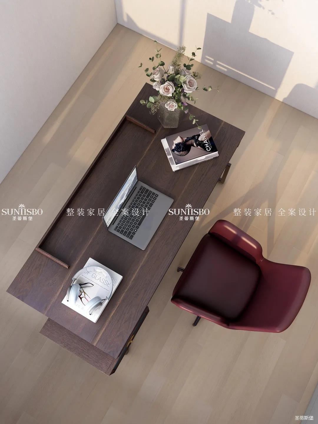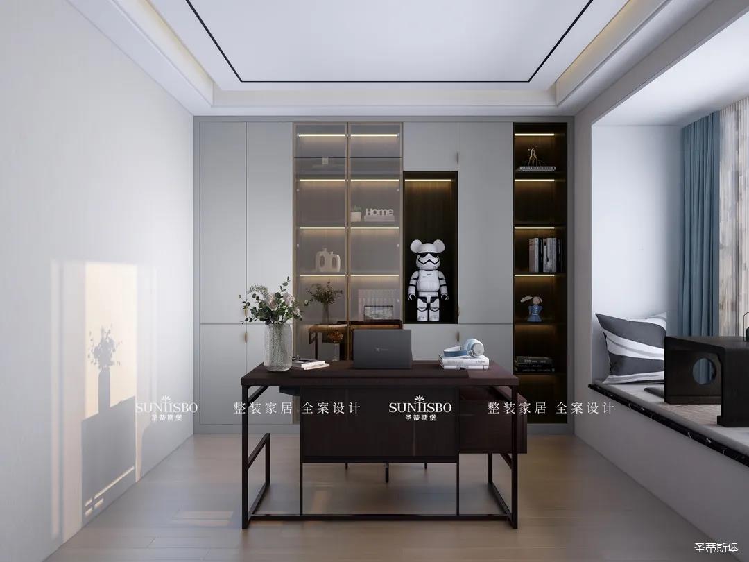陽光透過窗戶悄然進(jìn)入,光影浮動(dòng)間,實(shí)木書桌給書房騰出了一個(gè)安靜愜意的閱讀空間,偶爾放下書本,徑直探向窗外,慢享陽光里慵懶的味道。