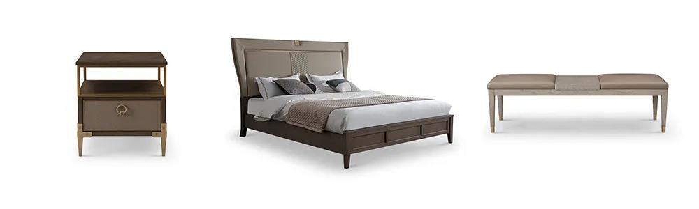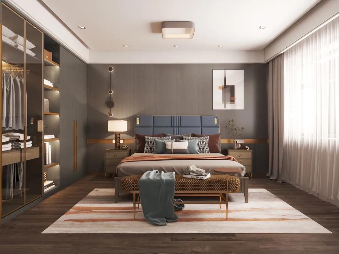 床屏?xí)r尚的霧霾藍(lán)色,與素雅的床品營(yíng)造出一種低調(diào)的簡(jiǎn)奢氛圍。金屬點(diǎn)綴著柜體拉手,床尾凳、床頭柜等微小細(xì)節(jié),讓生活充滿著內(nèi)在涵養(yǎng)與力量。
