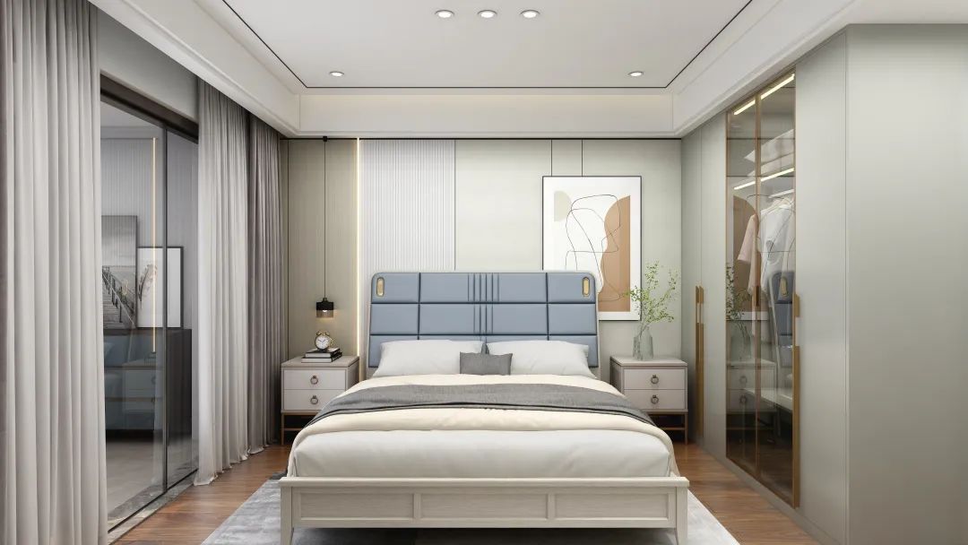 次臥用淺灰奠定空間時尚且沉穩(wěn)的格調(diào)