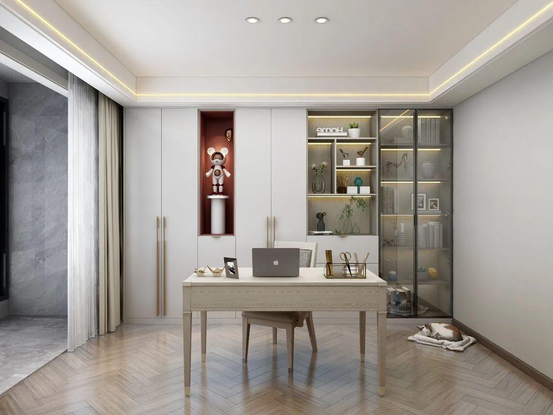 書房以和諧自然的材料,肌理化表現(xiàn)